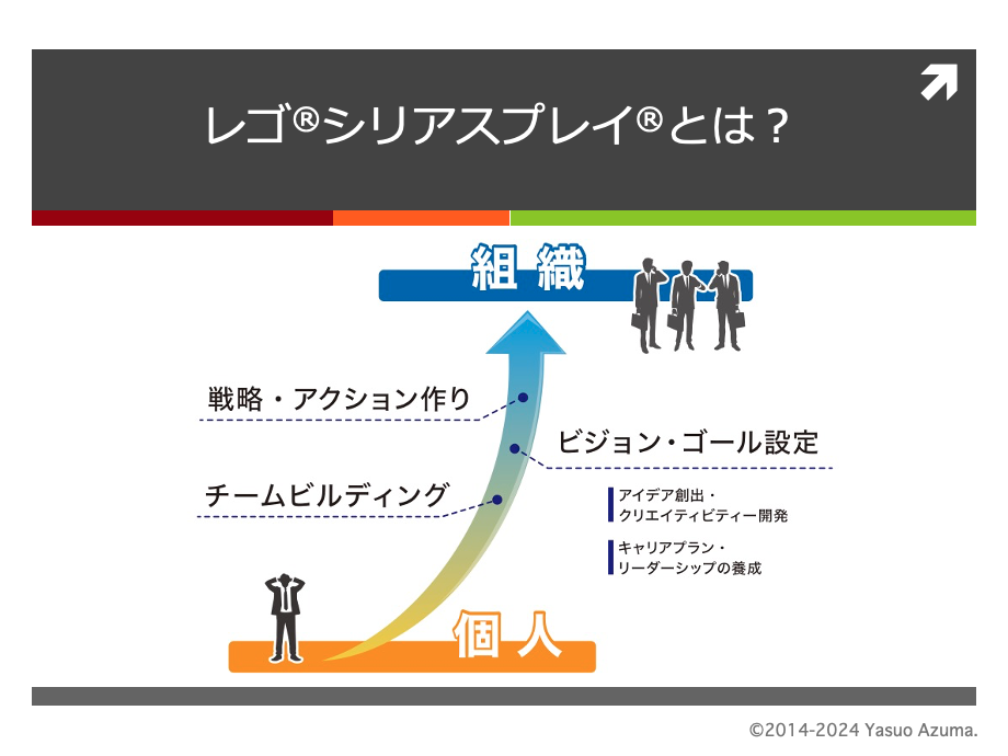 「遊びを通じてイノベーションやパフォーマンスの向上をもたらす」というレゴ®シリアスプレイ®は2001年にレゴ®社の本社があるデンマークで開発されました。そのコンセプトはレゴ®ブロックが単なる遊び道具ではなく、チームや組織の深層にある問題を解決し、新しいアイデアや戦略を生み出すための強力なツールとして活用するというものです。この記事を読むことで、あなたの組織も新たな発想で成長の一歩を踏み出すきっかけを得られるかもしれません。